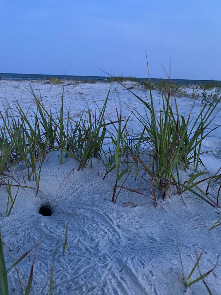 Just kidding, ghost crabs don’t cackle. And they last thing they want to do is chase you – they’d much rather sprint into the surf or back into their burrows at the sight of a giant wielding a blinding beam of light.