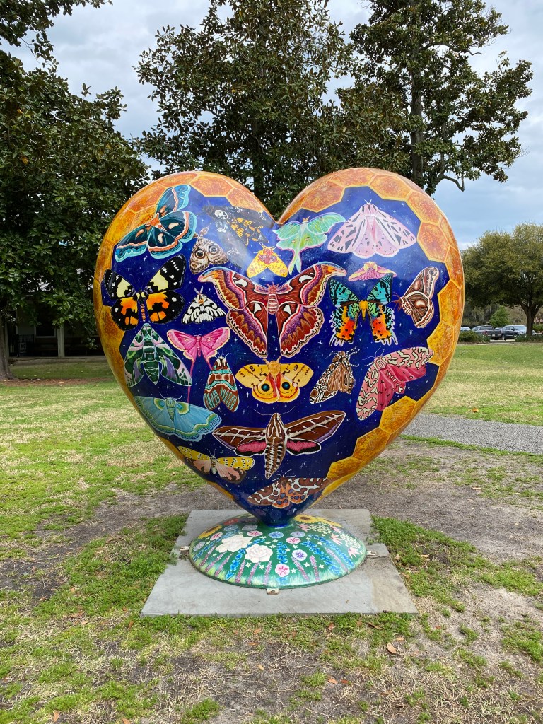 A beautiful sculpture showcasing a variety of lepidopterans at Airlie Gardens in Wilmington, NC