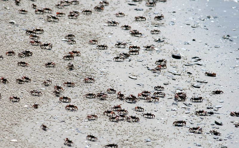 In actuality, calling crabs are neither making music nor calling to each other when they wave. Instead, they wave to get rivals to back off their turf or beckon potential mates. Male crabs will also use their large claw to fight with one another over burrows or females. While having a long, lightweight claw is ideal for attracting mates, males with heavy claws have the advantage in claw-to-claw combat.