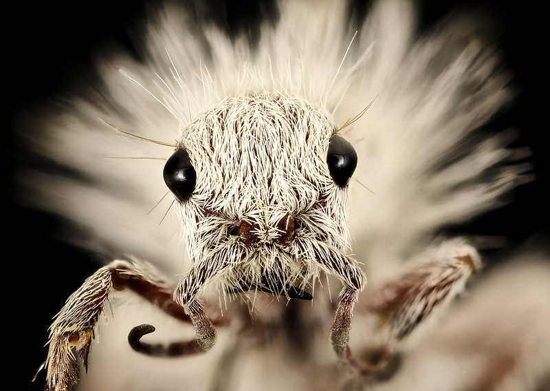 This is the second time a velvet ant has made an ArthroBlogger top ten list, and this little wasp also has a double dose of deception going on. Not only do females of this species lack wings and thus resemble ants (they’re actually wasps), but their fluffy setae make them look like pieces of fluff or creosote seeds being blown around by the wind when they walk. This disguise usually deters predators looking for an insect snack, but as a last resort, thistledown velvet ants, er, wasps, can pack a painful punch with their stingers.