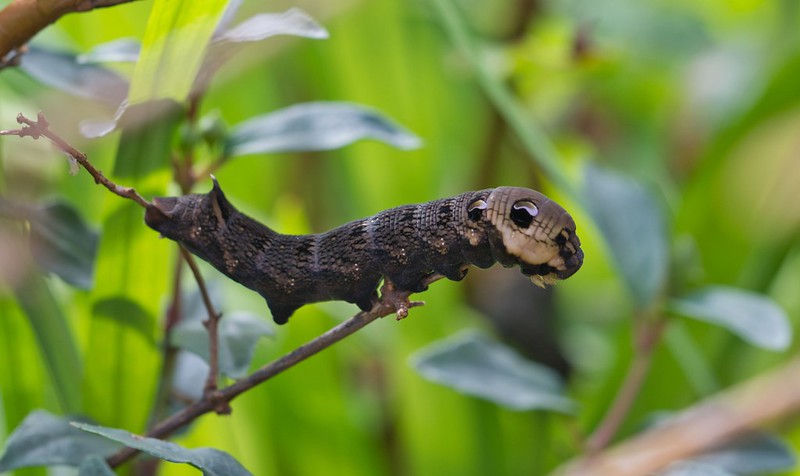 I couldn’t find a photo of one on Flickr, but this caterpillar is too cool not to include in this list, so please please please look at the snake-mimicking caterpillar here, you will not be disappointed. Hemeroplanes triptolemus is one of the most amazing arthropod mimics around: while preferring to camouflage itself as a twig or leaf, this particular hawk moth caterpillar can also bear a striking resemblance to a viper when it sucks in air through the spiracles near its head region! The caterpillar is actually harmless, but most predators don’t stick around long enough to find out – especially when it pretends to strike at them with its fake snake head!